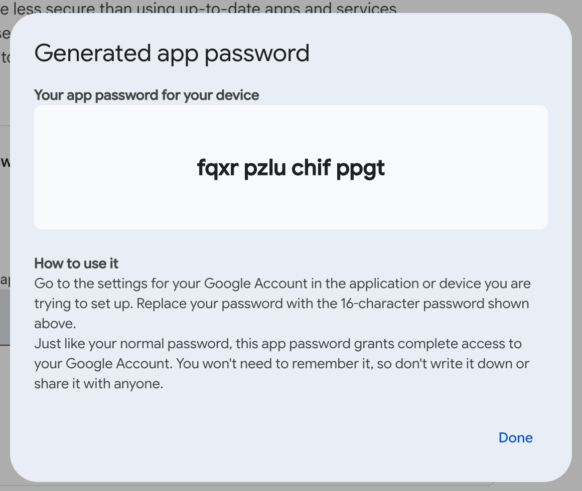 Uwaga: Hasło aplikacji jest generowane jednorazowo. W przypadku jego utraty należy wygenerować nowe.
